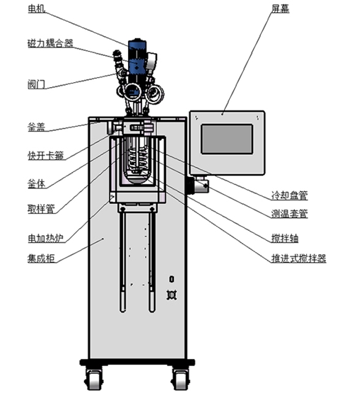 產(chǎn)品功能和特點(diǎn):升降型式,機(jī)電一體化設(shè)計(jì)、結(jié)構(gòu)緊湊;框架支撐結(jié)構(gòu),配腳輪方便移動(dòng);主體可快開設(shè)計(jì),開閉釜操作方便、快捷;升降輔助機(jī)構(gòu)方便操作,手動(dòng)/電動(dòng)可選;高扭矩磁力傳動(dòng),配優(yōu)選電機(jī),提升運(yùn)行穩(wěn)定性;攪拌支持定制槳葉類型,適配多樣化攪拌需求;加熱爐傳熱快,均熱效果好,效率可調(diào);真彩色觸控屏,模塊化顯示,控制界面操作簡潔;支持遠(yuǎn)程控制,具備RS485通訊口,配上位機(jī)軟件;可顯示工作時(shí)間/溫度/轉(zhuǎn)速/壓力,PID自整定控溫精準(zhǔn);具備安全連鎖功能,超溫超壓報(bào)警;具備數(shù)據(jù)采集,記錄以及報(bào)表導(dǎo)出功能;支持選配加料、計(jì)量、取樣、冷凝等擴(kuò)展功能。